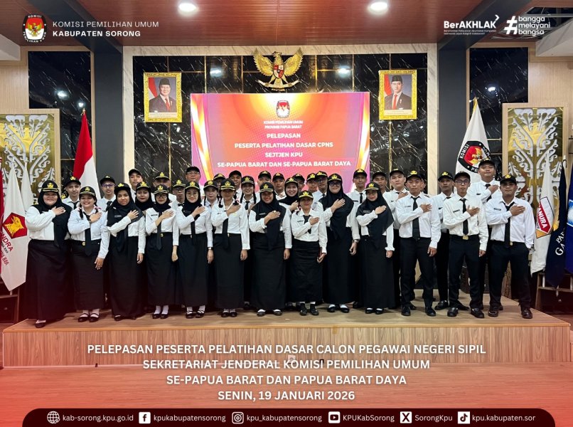 Komisi Pemilihan Umum (KPU) Kabupaten Sorong mengikuti Pelatihan Dasar Calon Pegawai Negeri Sipil (CPNS) Badan Pengembangan Sumber Daya Manusia (BPSDM) Provinsi Papua Barat Tahun 2026 Angkatan I & II, yang diselenggarakan oleh Pemerintah Provinsi Papua Barat pada 19 Januari s.d. 1 April 2026.