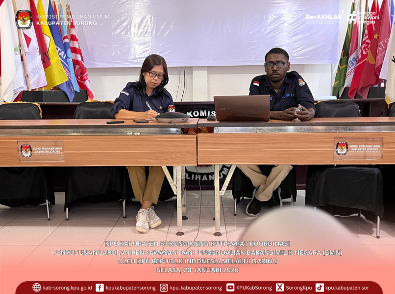 Komisi Pemilihan Umum (KPU) Kabupaten Sorong mengikuti Rapat Koordinasi Penyusunan Laporan Pengawasan dan Pengendalian Barang Milik Negara (BMN) yang diselenggarakan oleh KPU Republik Indonesia secara daring. Selasa, 20 Januari 2025.