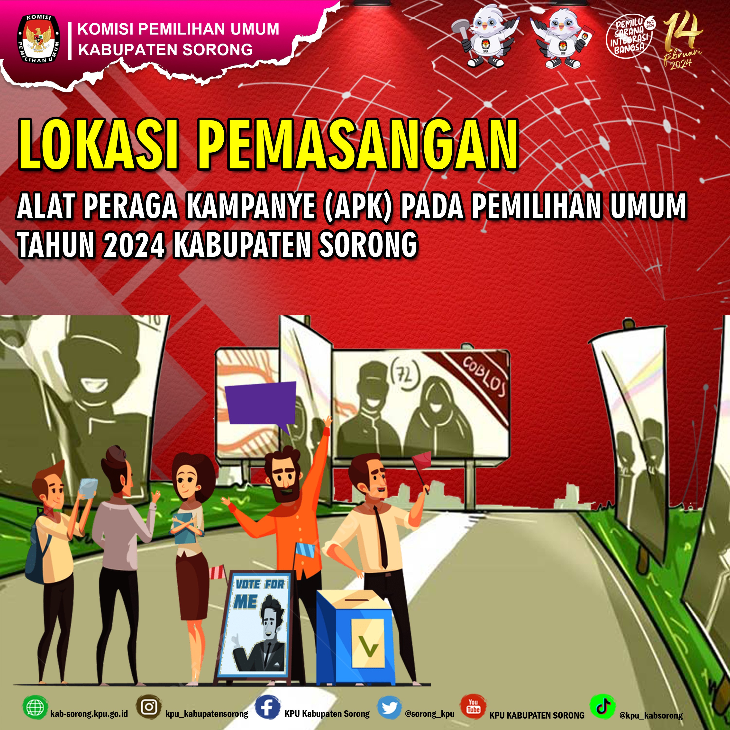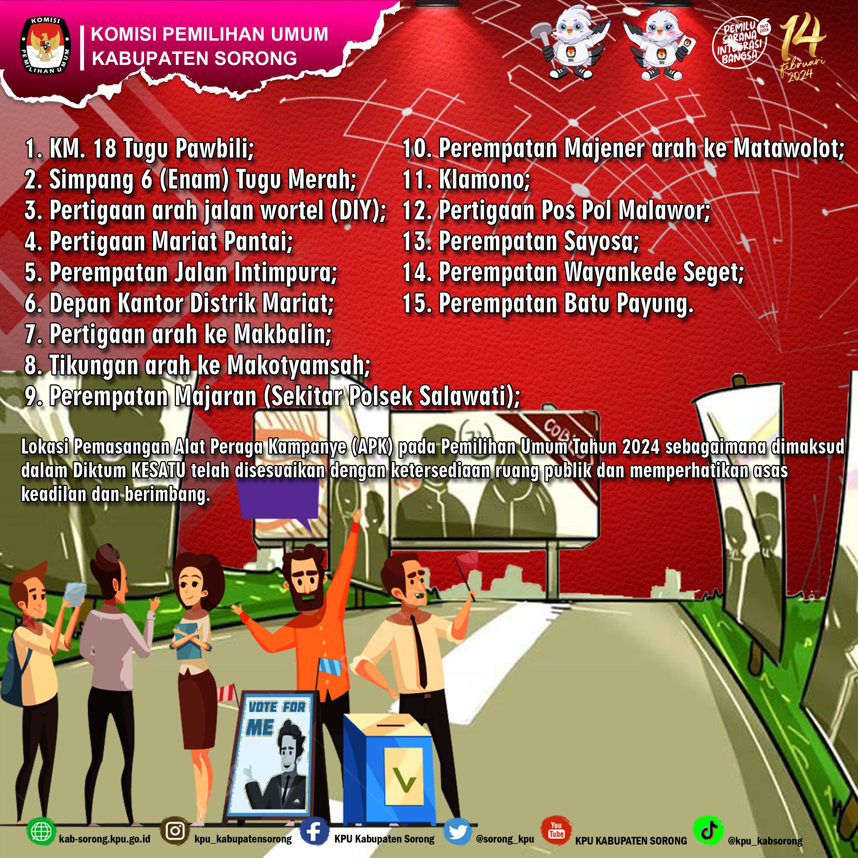 #TemanPemilih, menuju 76 Hari menjelang Pemilu 2024, Keputusan Ketua Komisi Pemilihan Umum Kabupaten Sorong Tentang Lokasi Pemasangan Alat Peraga Kampanye (APK) pada Pemilihan Umum 2024. Menetapkan Lokasi Pemasangan Alat Peraga Kampanye