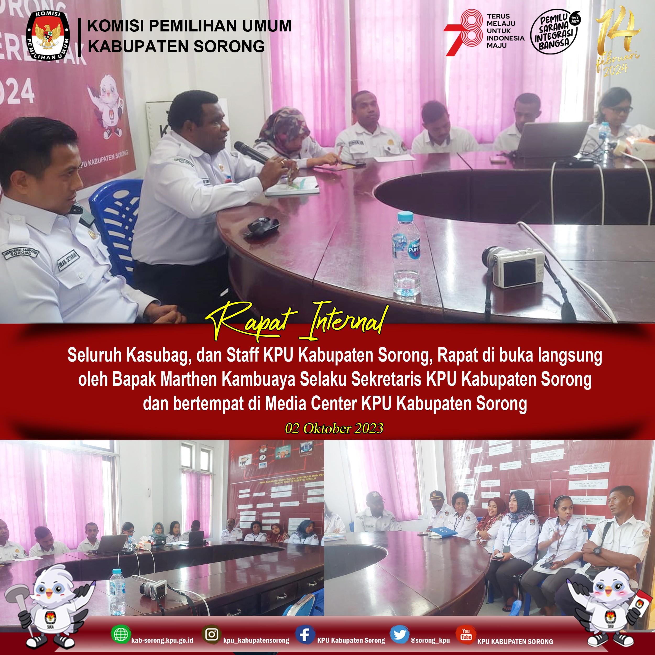 #TemanPemilih Komisi Pemilihan Umum Kabupaten Sorong gelar bimtek dan sosialisasi internal terkait DPTb dan DPK oleh bagian Perencanaan, Data dan Informasi, dan Sosialisasi PKPU Nomor 8 Tahun 2021 tentang Tata Naskah Dinas dan Keputusan KPU nomor 57 Tahun 2022 yang di rubah dengan Keputusan KPU Nomor 666 Tahun 2023 tentang Kode Klasifikasi Arsip dan Pengkodean Naskah oleh bagian Keuangan, Umum dan Logistik di lingkungan Komisi Pemilihan Umum di kantor KPU Kabupaten Sorong. Senin, 2/10/2023.