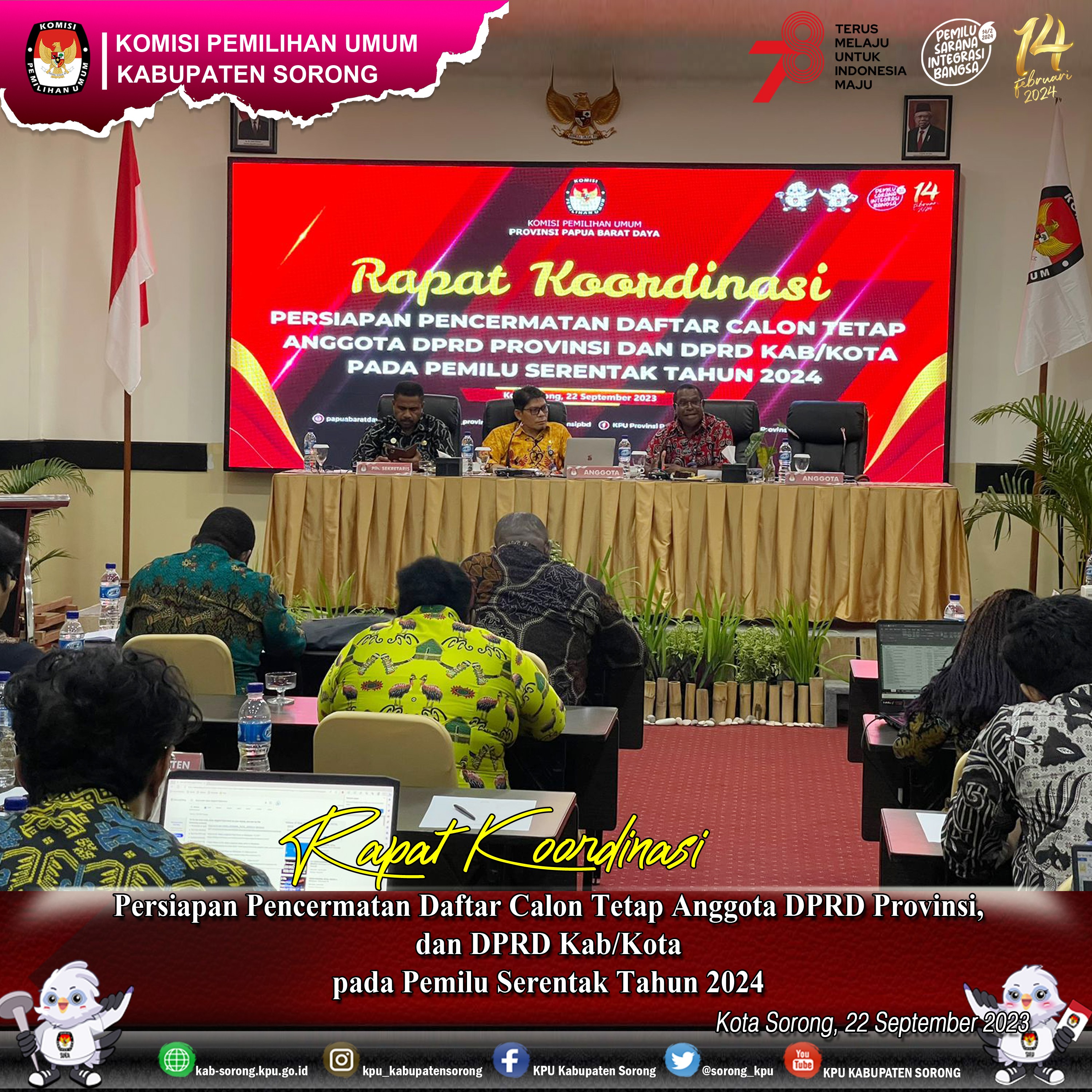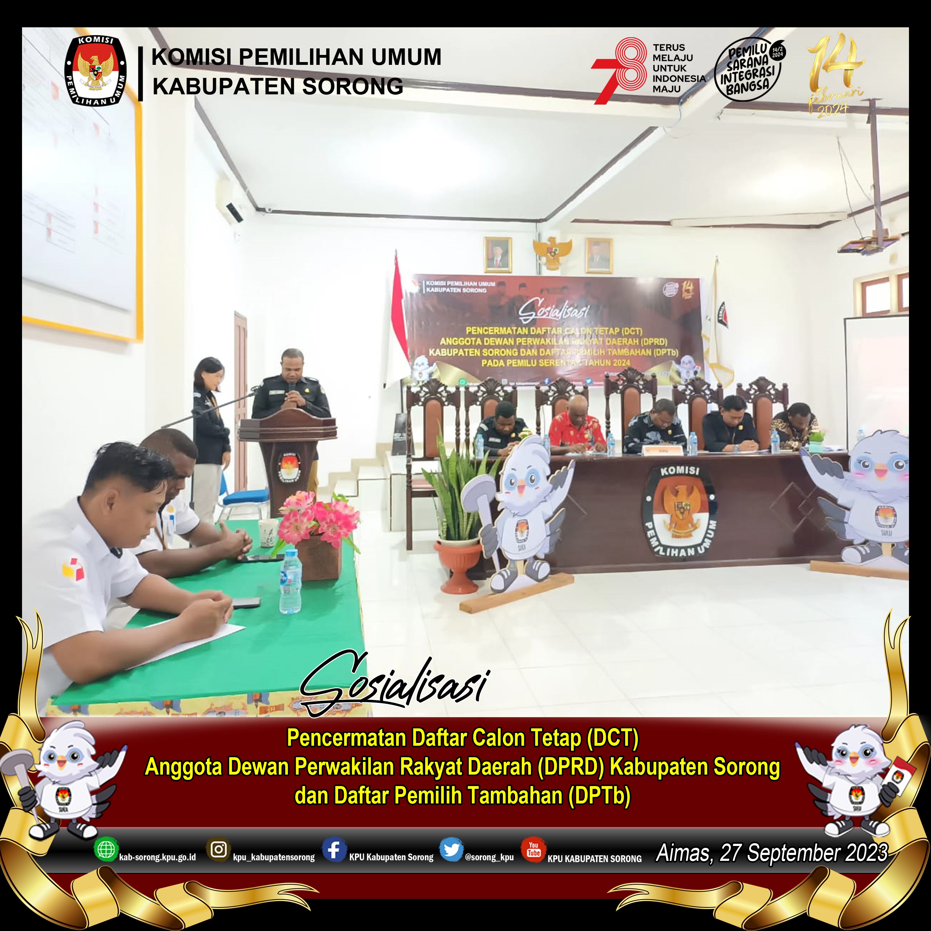 #TemanPemilih Komisi Pemilihan Umum Kabupaten Sorong gelar Sosialisasi Pencermatan Rancangan Daftar Calon Sementara (DCT) dan Daftar Pemilih Tambahan (DPTb) kepada partai politik, Rabu, 27/9/23.