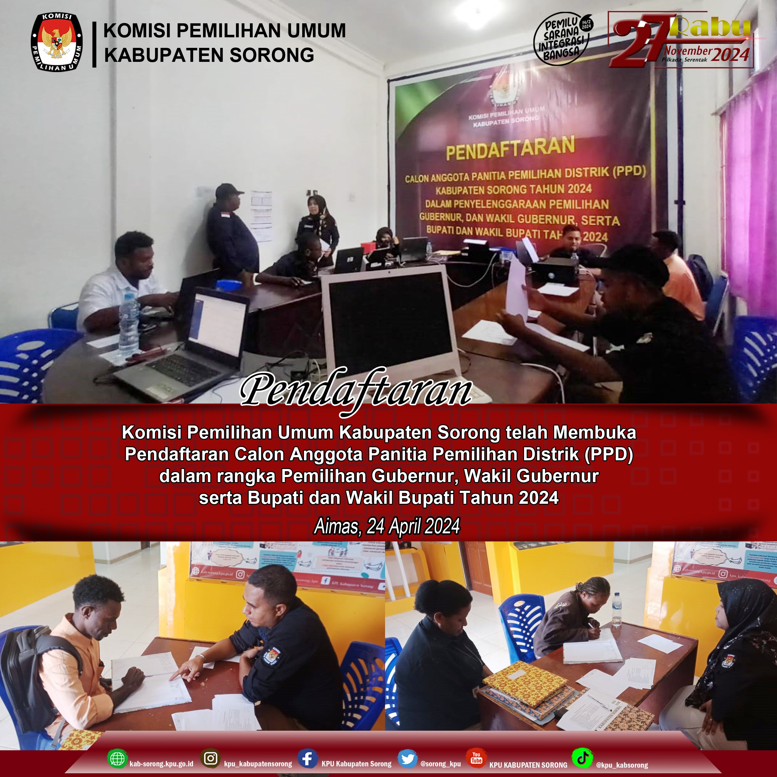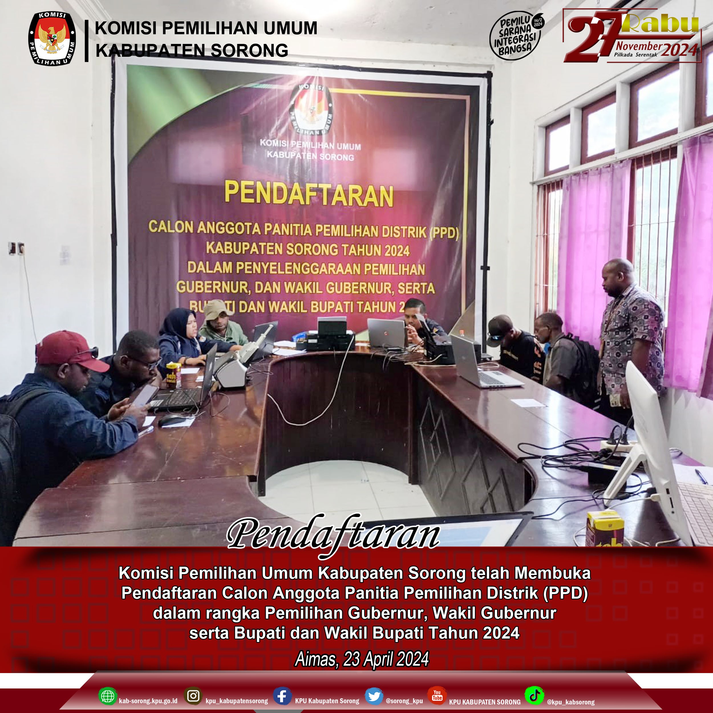 Giat tersebut di pimpin dan di buka langsung oleh Bapak Frengki Duwith selaku Ketua KPU kabupaten Sorong dan memberikan sambutan dan mengingatkan bahwa setiap anggaran yang keluar harus ada pertanggung jawaban dan di pergunakan sebagaimana mestinya pada pemilihan Gubernur, dan Wakil Gubernur serta Bupati dan Wakil Bupati Sorong Tahun 2024.