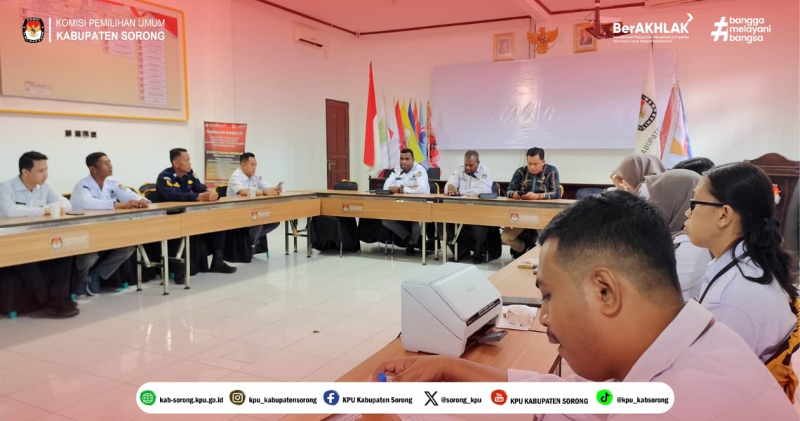 Rapat dipimpin langsung oleh Ketua KPU Sorong, Frengki Duwith, bersama Sekretaris KPU Sorong, Marthen Kambuaya. Kegiatan ini diikuti oleh Ketua Divisi Teknis Penyelenggaraan Abdul Salam, para Kepala Subbagian, serta seluruh staf di lingkungan KPU Kabupaten Sorong.