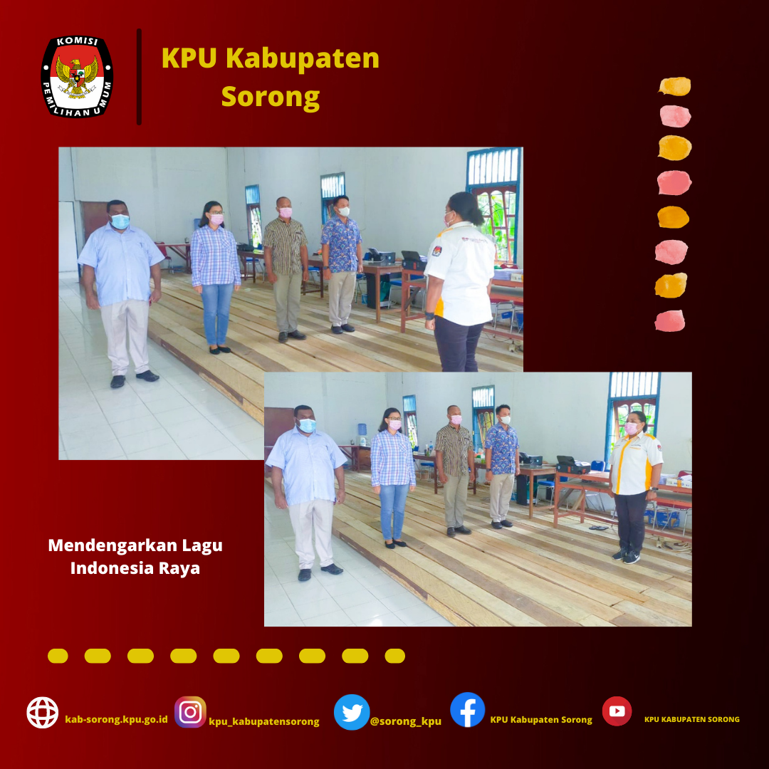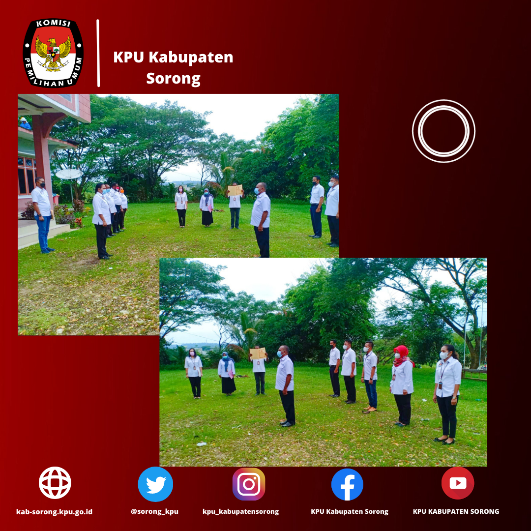 Apel pagi Senin 13 Desember 2021 dipimpin oleh Ibu Adomince Y Pandori selaku Ketua KPU Kabupaten Sorong dan diikuti oleh jajaran komisioner dan jajaran kesekretariatan KPU Kabupaten Sorong. Adapun amanat yang disampaikan oleh Beliau yaitu mensukseskan keterbukaan publik melalui seluruh akun sosial media dan website resmi yang dimiliki oleh KPU Kabupaten Sorong.